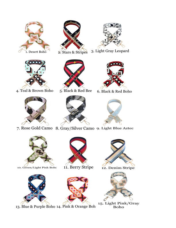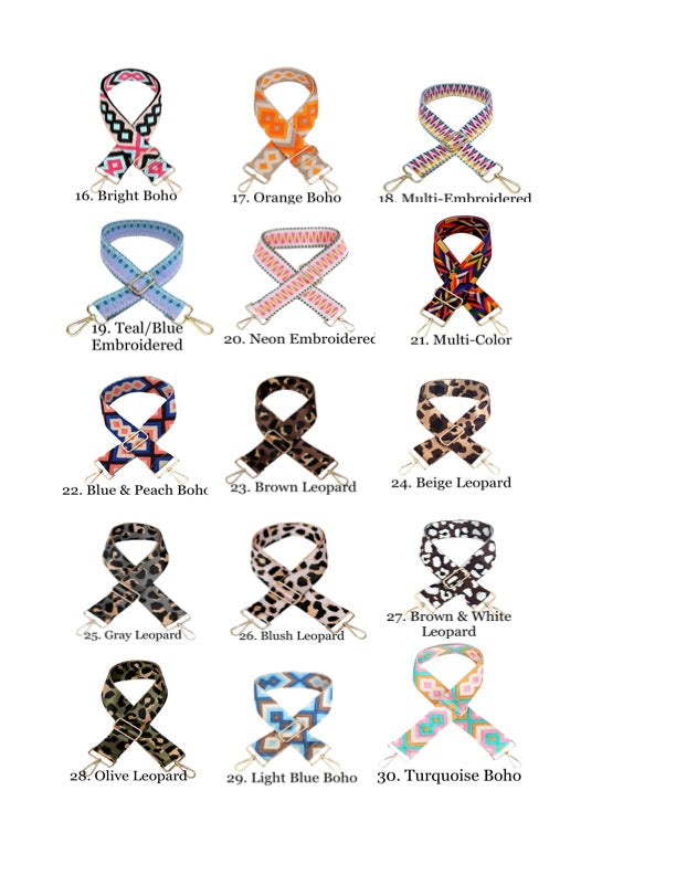 First choose the vegan leather color for your crossbody. Then choose your favorite strap style.